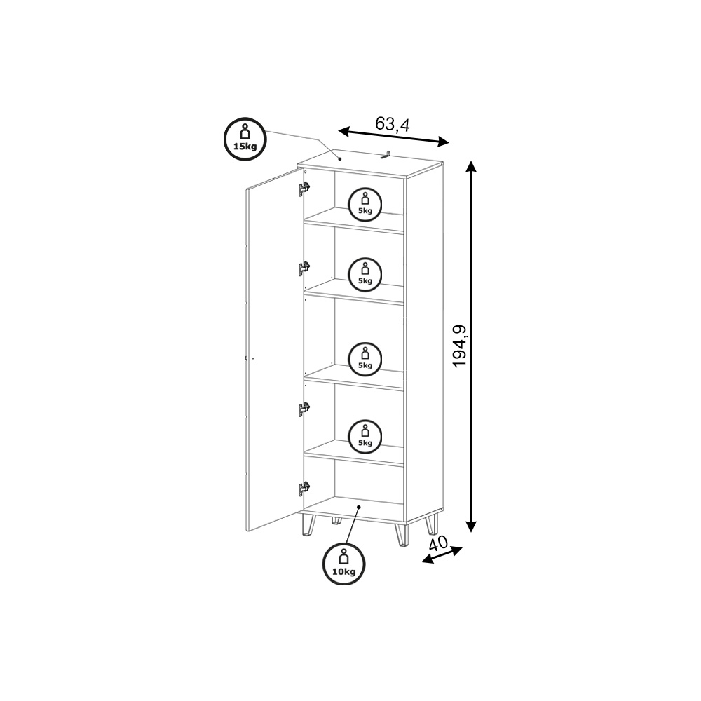 Skapis BL 17 - Platums x Augstums x Dziļums: 63 * 195 * 40 cm.