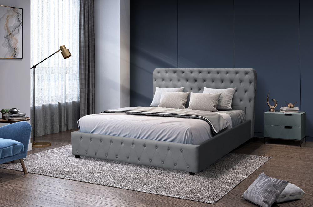 Gulta BELINDA 180*200 + Matracis ar pacelšanas mehanismu, veļas kasti. Grezns mīksts galvgalis un mīkstas malas. Gultas pamats uz kājam.
