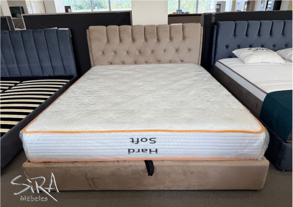Norādītā cena: Gulta ar matrača izmēru 180 x 200 cm, ar pacelšanas mehānismu un veļas kasti + matracis.
