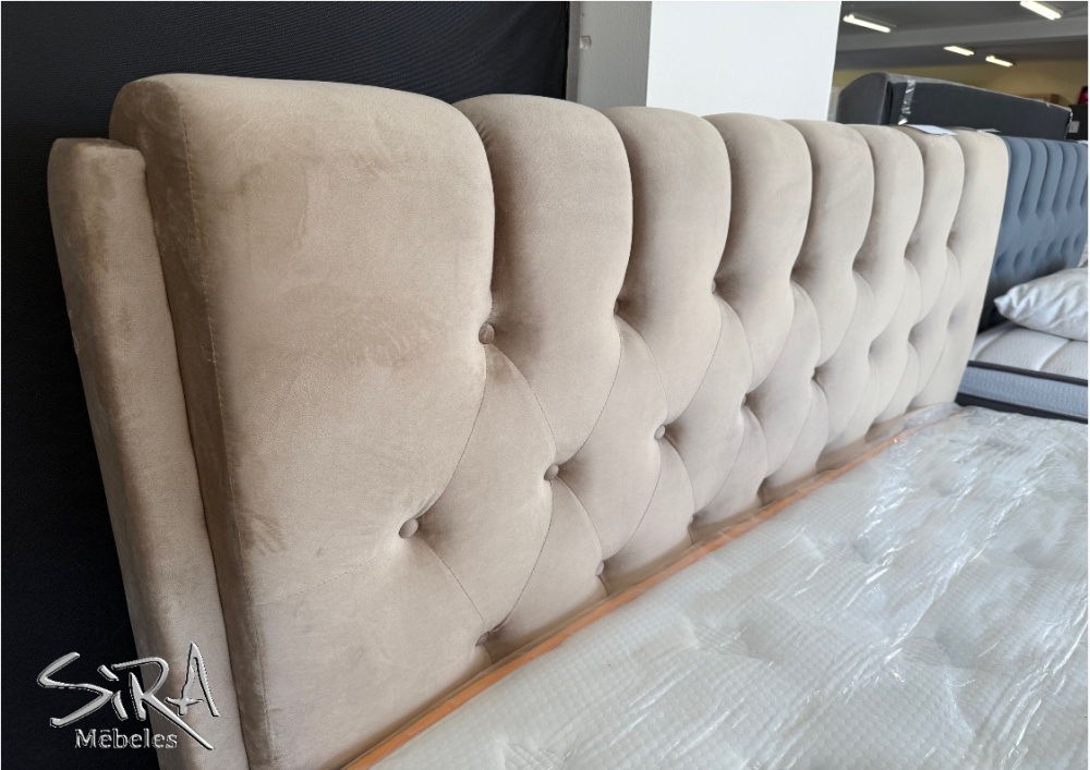 - Guļamvieta: 180 * 200 cm; Kopējais izmērs: 190 * 220 cm; Sānu augstums 26 cm; Muguras augstums: 110 cm.