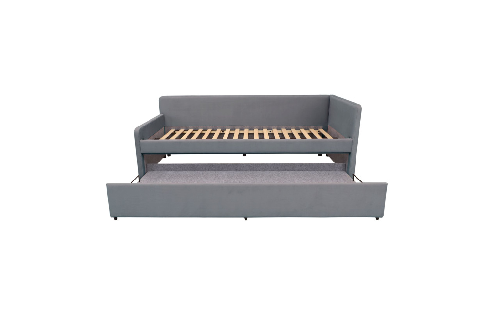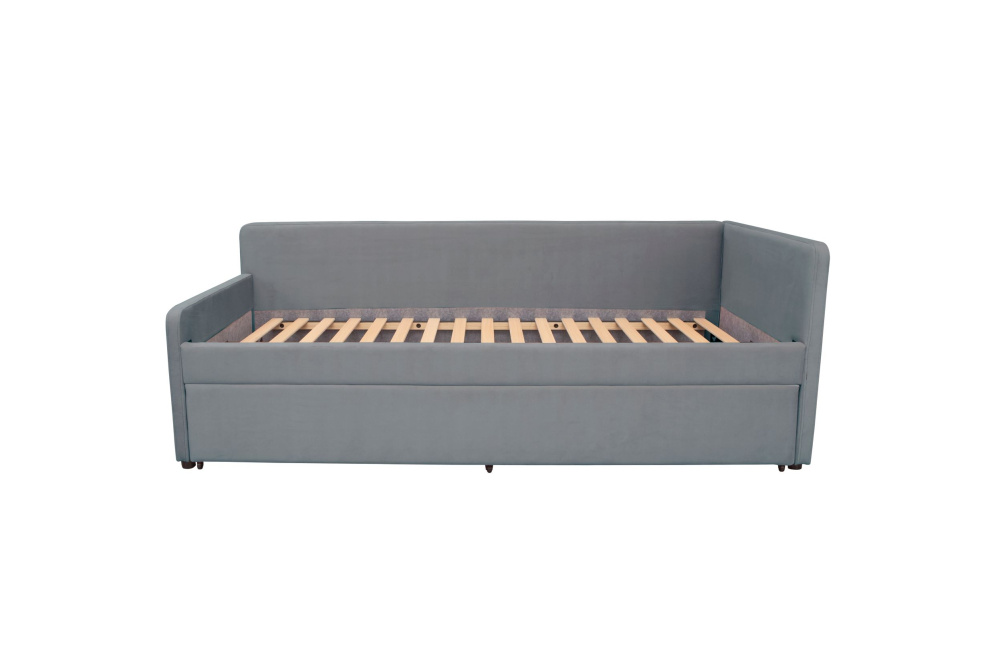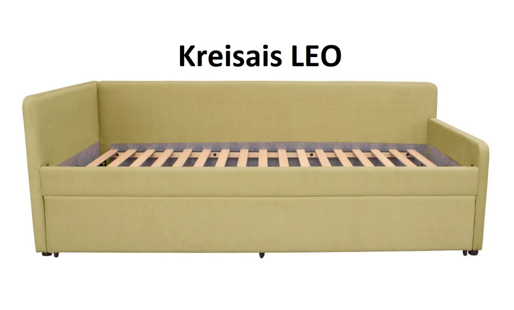 LEO – это 2 односпальные кровати в одной. Второе место можно использовать как ящик для белья или как второе спальное место. LEO это удобная и стильная модель для вашего интерьера, элегантность и функциональность в одной кровати! Каркас из дерева гарантирует долговечность и прочность, а высокоплотная обивка из мягкой ткани создает комфортное место для сна. Металлические опоры обеспечивают надежную поддержку матраса. Встроенное отделение для хранения, с легким доступом, позволяет хранить постельные принадлежности и другие вещи.