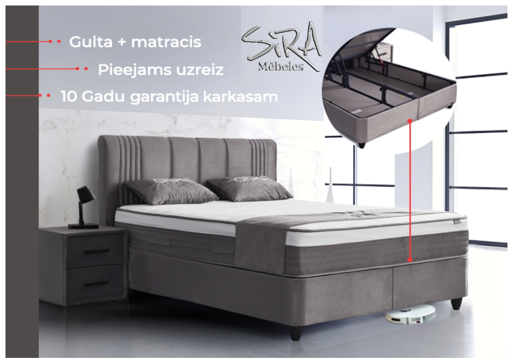 - Спальное место: 180 x 200 см; 187 x 122 x 210 cм, высота от пола 38 cm + матрас.