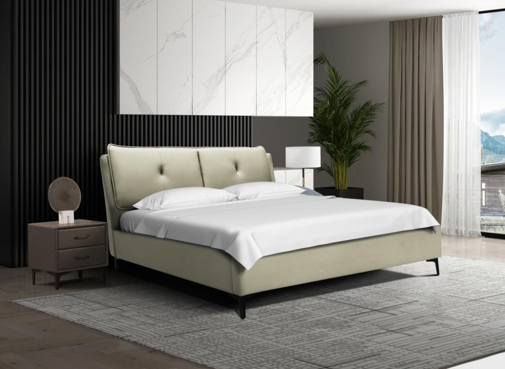 Кровать DALIDA 160*200 + Матрас с подъемным механизмом, ящиком для белья. Роскошное и мягкое изголовье со стяжкой и мягкие боковины. Основание кровати на ножках.