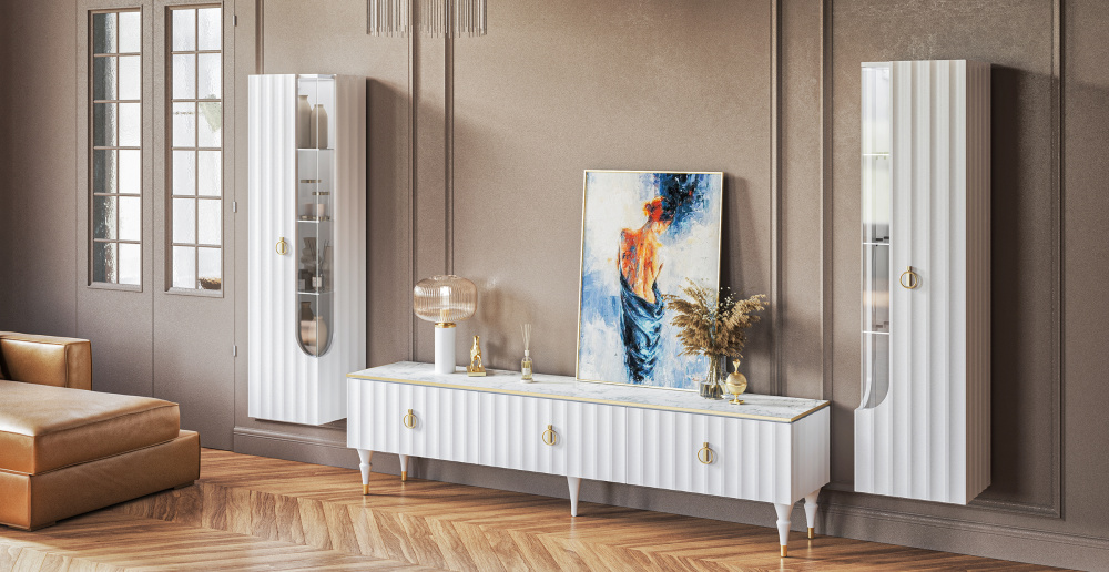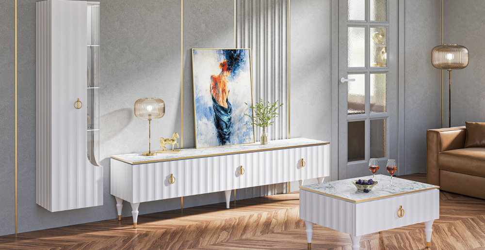 Коллекция мебели Лоренсо – это изысканный дизайн, подчеркнутый золотой металлической линией на изящной утончённой столешнице Мрамор Неро Маркина. Дизайнерские резные ножки из дерева придают коллекции легкость, а инновационное матовое покрытие от итальянских производителей будто приглашает дотронуться до бархатистой волны фасада и ощутить тепло прикосновения. Необычные подвесные шкафы идеально смотрятся вместе, глядя друг на друга прозрачными боковыми витринами, задавая тон всему интерьеру. С мебелью Лоренсо вы окунетесь в атмосферу престижного загородного клуба, где все устроено для вашего комфорта и спокойствия. Мебель Лоренсо – это роскошный фон для вашей жизни.