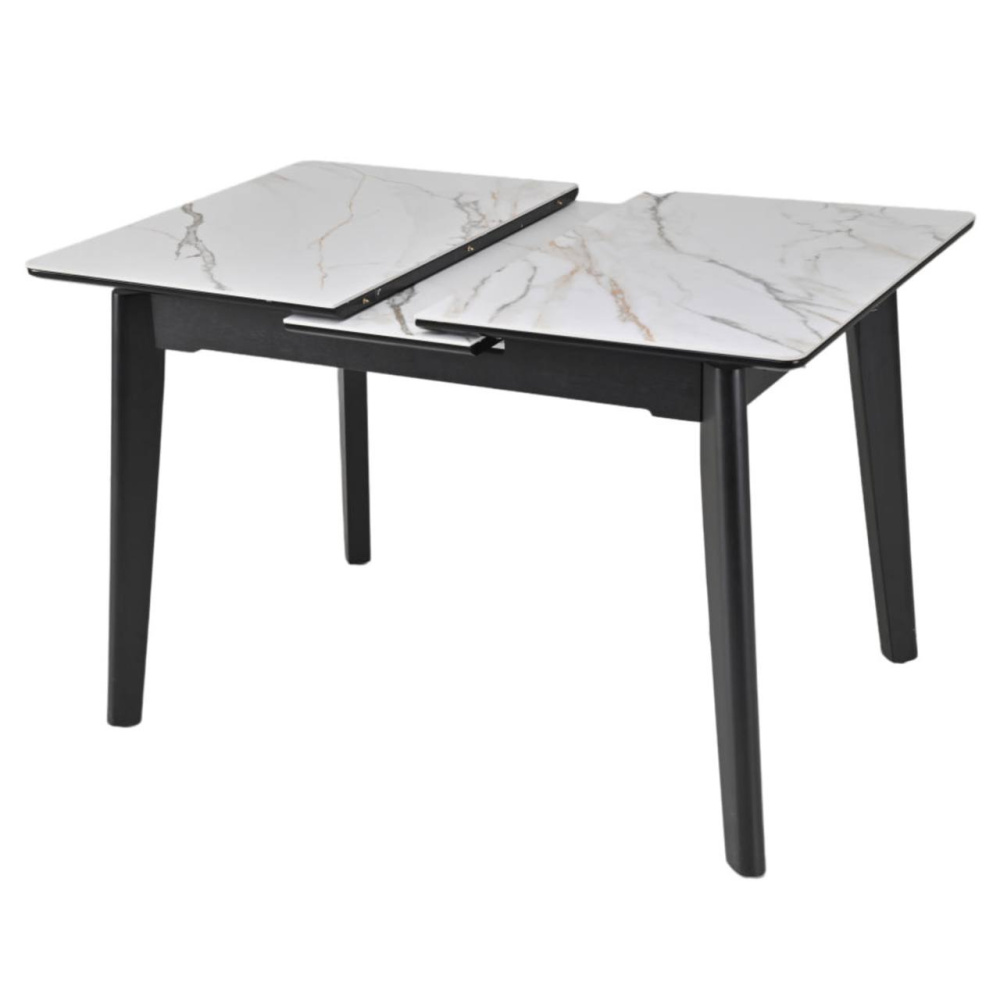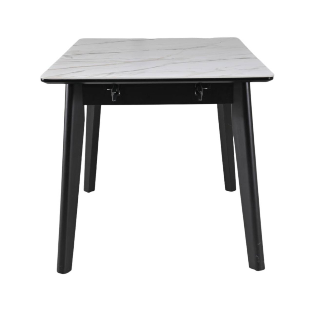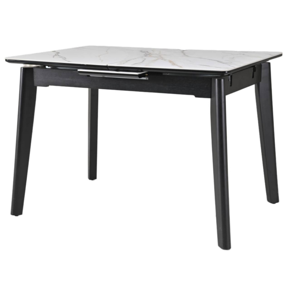 Стол OSTEN – стильный и практичный обеденный стол с раскладной конструкцией. Столешница выполнена из прочного MDF с матовым покрытием 6 мм, придающим поверхности элегантный вид и устойчивость к износу. Надёжные ножки из массива каучукового дерева с чёрной матовой покраской обеспечивают устойчивость и добавляют современный акцент в интерьер. Отличный выбор для тех, кто ценит стиль и функциональность.