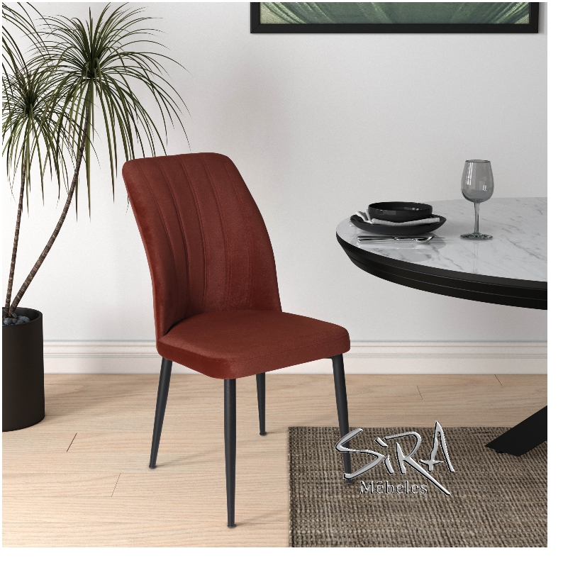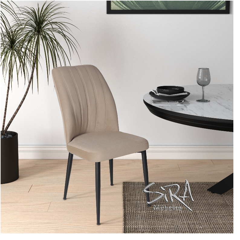 Легкий дизайнерский стул VAREL, обитый бархатной тканью. Особенно удобный стул, который легко скомплектовать к столам классического или современного дизайна.